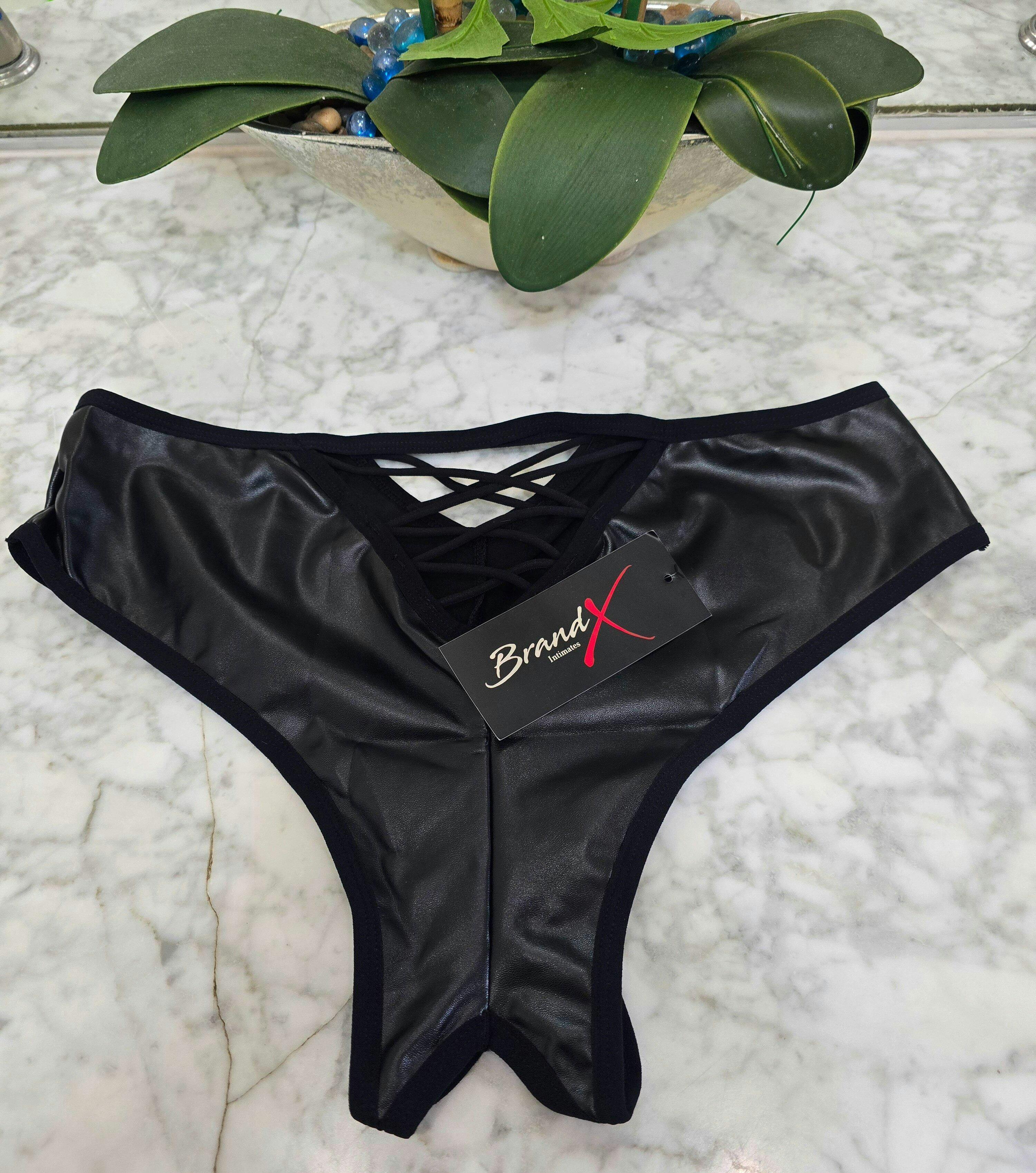 This sleek, crotchless knicker features a crossover front and a caged back in a bold "wet look" finish. Easy to slip on and sure to impress, it’s the perfect way to kick off some fun once it’s unveiled.